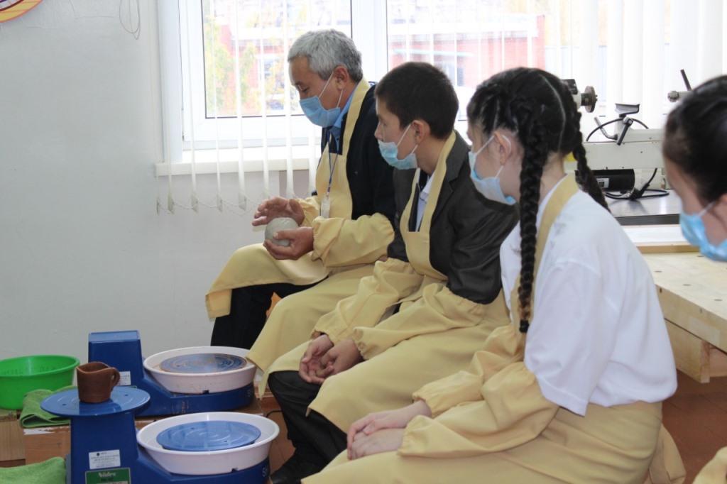 Педагог гончарного дела Ильясов Алихан Айтуарович показал гостям мастер-класс по изготовлению сосуда на гончарном круге. В завершении мероприятия Руководитель школы Бултаева Сауле Шайзатовна вручила гостям памятные статуэтки.